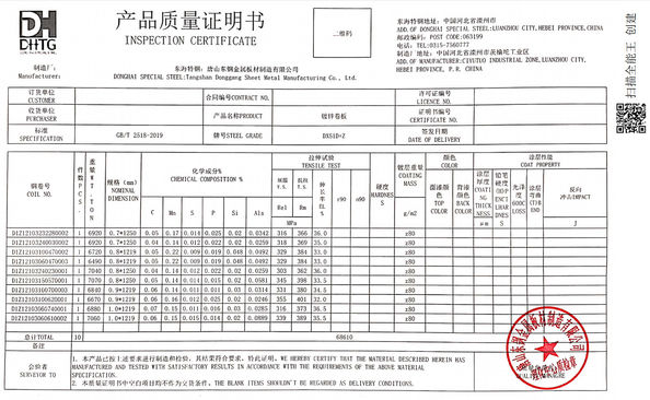 INSPECTION CERTIFICATE